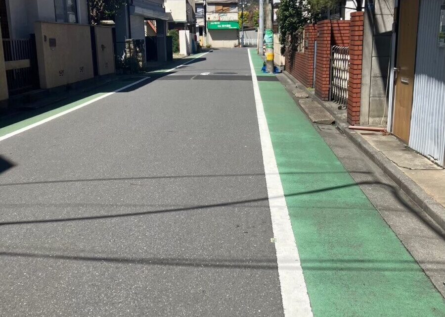 前面道路は広いですが、車の通りも少ない場所に位置しております。